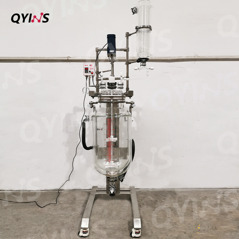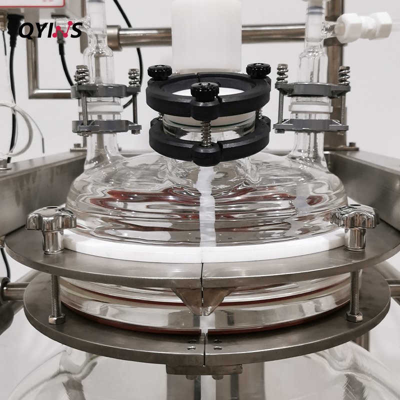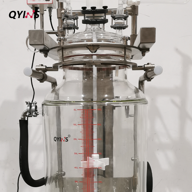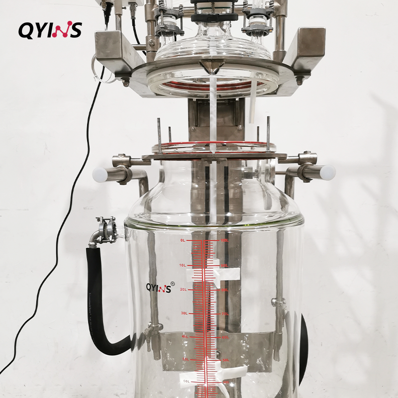 雙層玻璃反應(yīng)釜-升降釜體-換熱器進(jìn)料