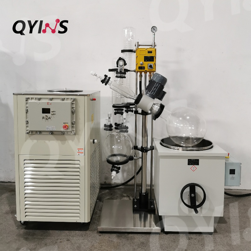 定制雙冷凝器款防爆旋轉(zhuǎn)蒸發(fā)儀 EX QYRE-20L(容量可定制1~100L) 采用大容量,大口徑旋轉(zhuǎn)蒸發(fā)瓶,蒸發(fā)面積大,在減壓下置于水浴中,邊旋轉(zhuǎn)邊加熱,使溶液擴散蒸發(fā) 廣泛應(yīng)用于濃縮、干燥、提取等 化工、醫(yī)藥、食品常用設(shè)備 可配套真空泵、低溫冷卻液循環(huán)泵等