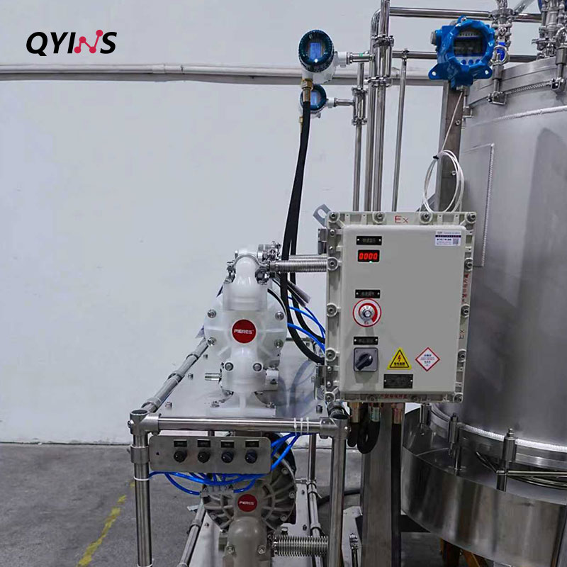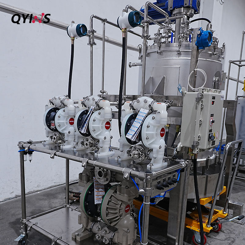 氣動(dòng)隔膜泵實(shí)現(xiàn)半自動(dòng)進(jìn)出料,有效減少人工操作,大大提高工作效率。
