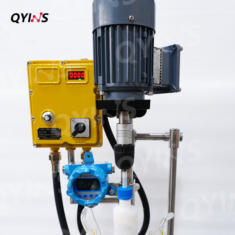 1、帶有減速箱配備減速比。對于粘稠物料或固體料較多的情況帶減速比的電機可低速增力使攪拌有力