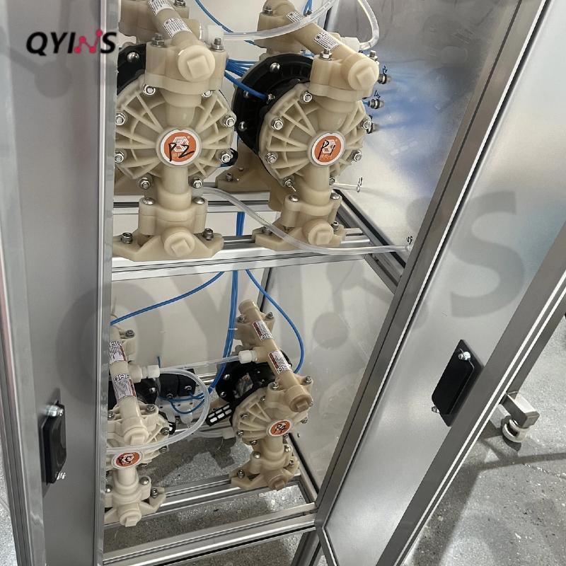 整條線采用PVDF氣動隔膜,通過控制系統(tǒng)調(diào)節(jié),可實現(xiàn)流體半自動進出料。